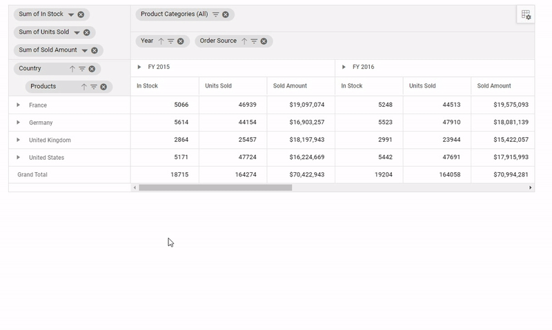 In the JavaScript Pivot Table, filtering reports helps to simplify, organize, and view only a necessary portion of data, along with its summary, for in-depth analysis. With our control, you can perform:
