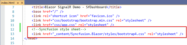 using System.Threading.Tasks; // Add the following namespace to use the Hub class inheritance. using Microsoft.AspNetCore.SignalR; namespace BlazorSignalRSfDashboard.Server.Hubs { public class DashboardHub : Hub { // Method call for updating dashboard panel into new dragged position. // id - Dashboard component ID. // row - New row for dragged panel. // column - New column for dragged panel. public async Task DashbordDragandDrop(string id, int row, int column) { await Clients.All.SendAsync("LayoutChange", id, row, column); } } } - Add the declared Hub namespace in the startup.cs file to register the service.