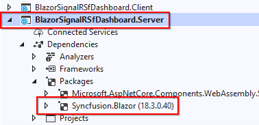 - Install the Syncfusion.Blazor NuGet package in the server project.