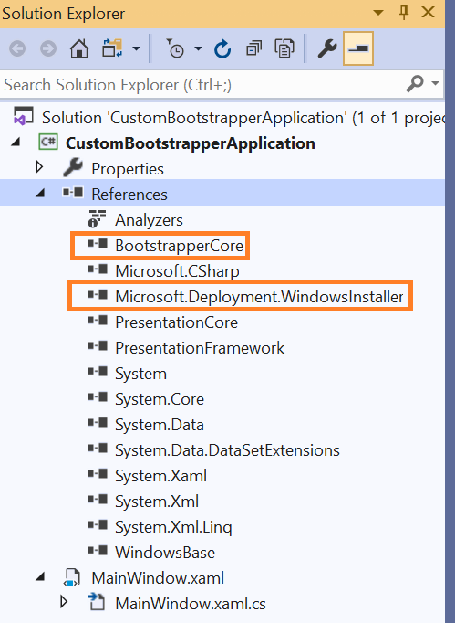 Step 1: Refer to the previous steps to create a bootstrapper project. In the bootstrapper project, change the bootstrapper application reference ID to “ManagedBootstrapperApplicationHost”.