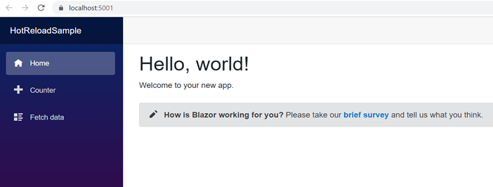 Thus, we have created the Blazor Server app. Refer to the following screenshot.