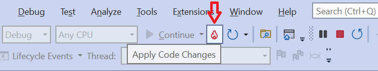 Follow these steps to use .NET 6 hot reload using the Apply Code Changes button: