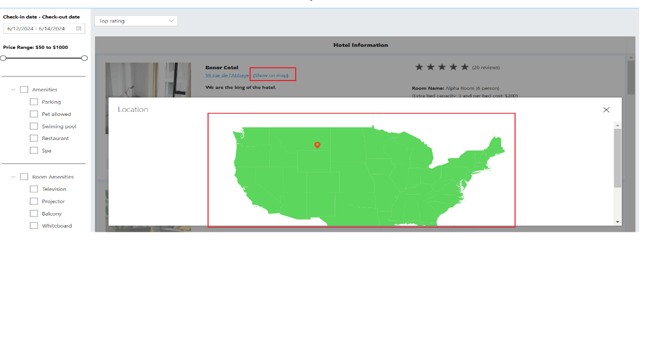 - Maps: To specify the hotel’s location. In this demo, we’ve assigned the random latitude and longitude values for the hotel location.