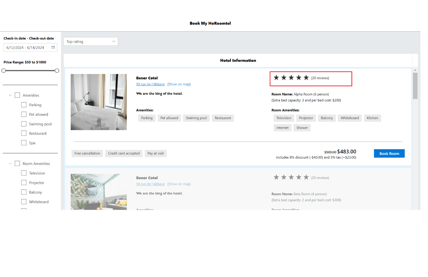 As per your request, we are currently working on a Hotel Booking Application using Blazor. We will provide it once it’s done.