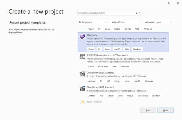 Follow these steps to create a Blazor WebAssembly hosted application: