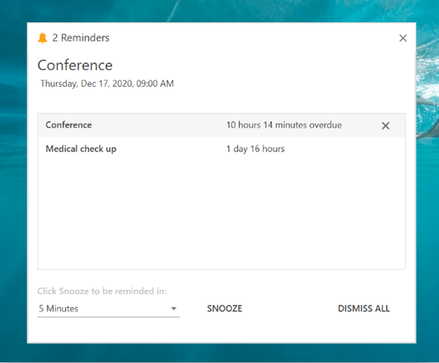 Refer to the following screenshot, which shows a reminder for a business meeting.