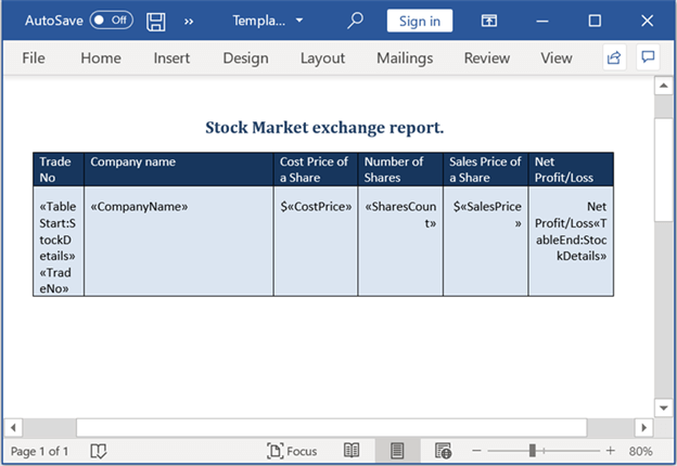 MailMergeDataTable dataTable = new MailMergeDataTable("StockDetails", stockDetails);
