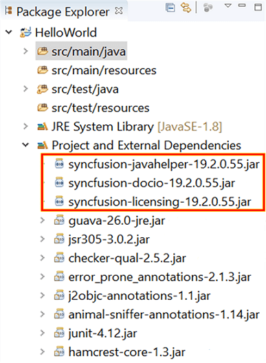 Package Explorer WindowThus, we have configured the Syncfusion Java packages from the Maven repository in your Gradle project. Let’s see the procedures to fill data in a table using the Syncfusion Java Word Library.
