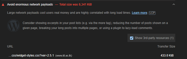 You need to maintain the network payloads below 1600 KiB. If not, it will cause a performance lag on your webpage.