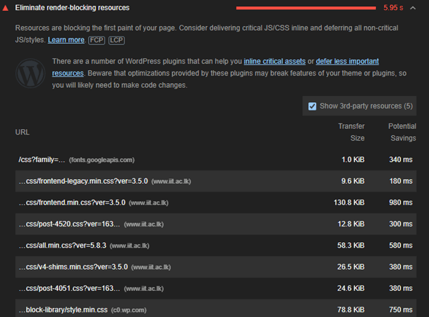Eliminate blocking resource when the page is loading