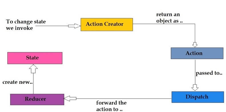 The following screenshot will explain the flow of updating an application state without using middleware in Redux.