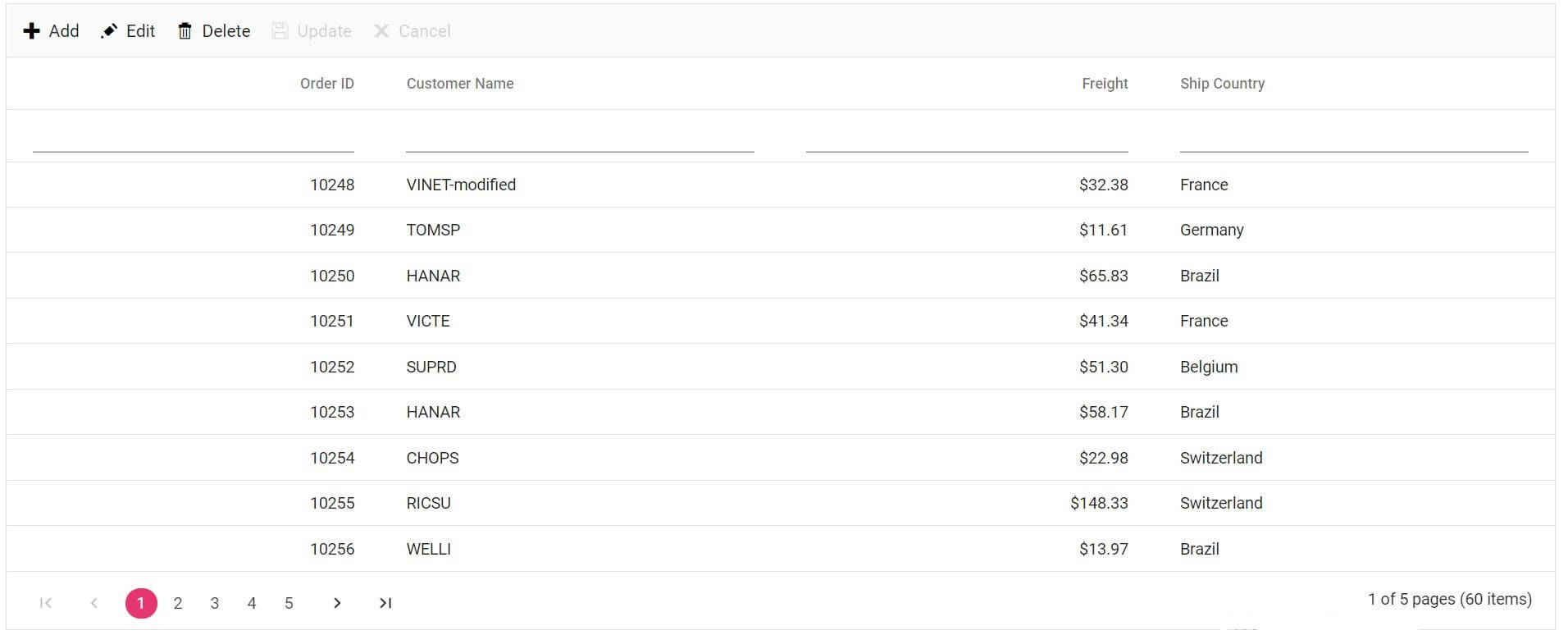 toolbarOptions = ['Add', 'Edit', 'Delete', 'Update', 'Cancel'];
