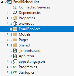 Step 3: Then, create a new folder in the project root directory and name it EmailServices.
