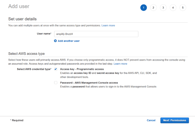 After entering the requested details, you will be redirected to the AWS IAM user creation wizard to complete the user creation process. There, you need to enter the relevant details and make sure to assign programmatic access and administrator access.
