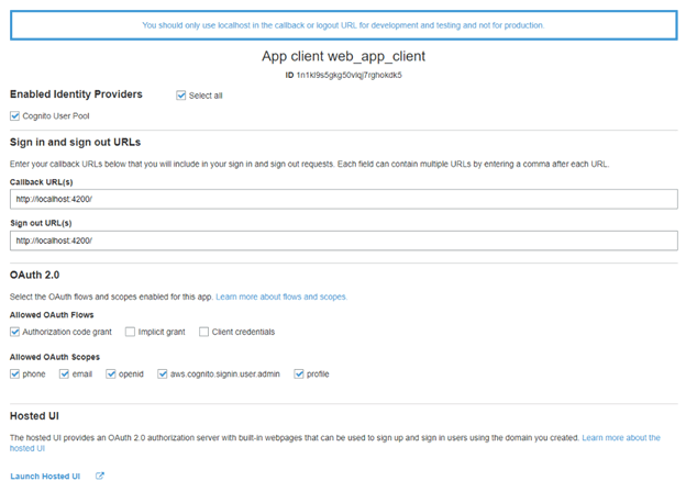 Now, click Launch Hosted UI and open the current login window if you want. However, there won’t be any single sign-on option since we haven’t configured it yet in our Angular app. So, let’s see how to enable Google login.