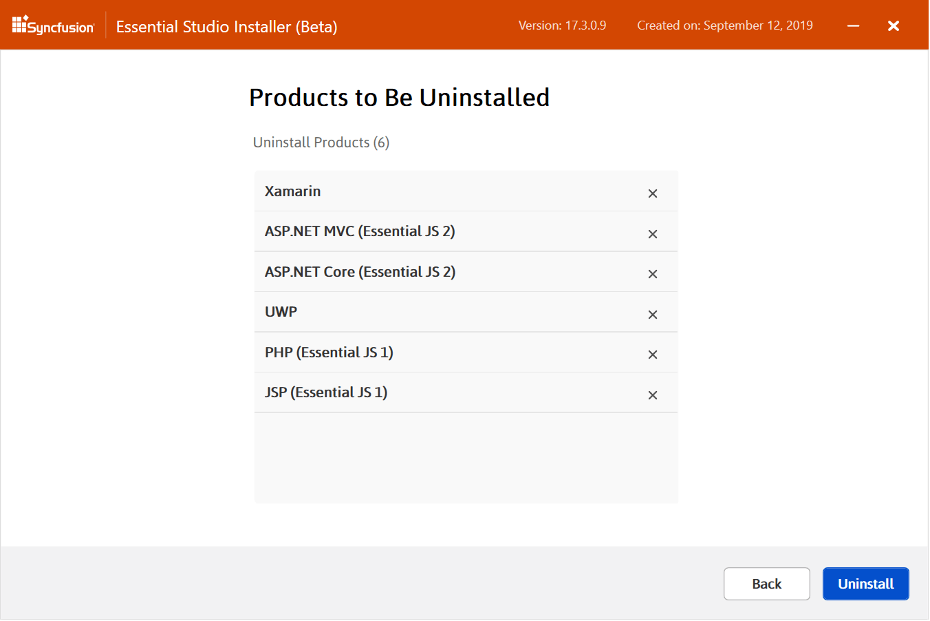 This makes the installation and uninstallation process so easy, preventing users from having to keep track of the installation process to initiate uninstallation and vice versa. To learn more about this feature, please refer to the following documentation: https://help.syncfusion.com/common/essential-studio/installation/install-using-the-web-installer#install-and-uninstallation.