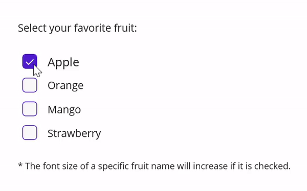 <Label Text="* The font size of a specific fruit name will increase if it was checked." FontSize="12"/>