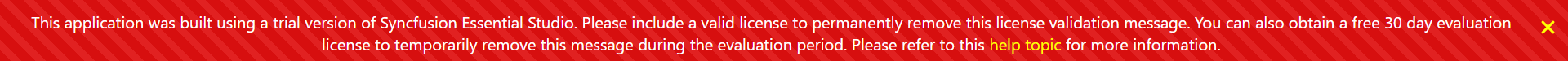 This popup message will convey the license validation error and a help link to get a license key and register it in your app.