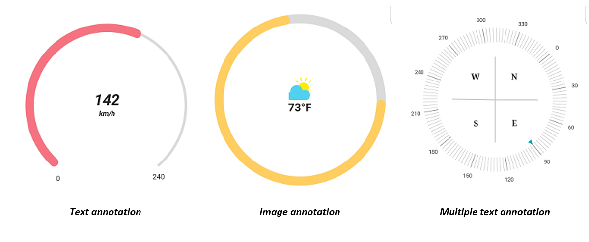 You can add multiple widgets, such as text and images as annotations, at specific points of interest in the Radial Gauge.