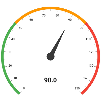 The gauge range is a visual element that helps to quickly visualize where a value falls on an axis. You can add any number of ranges inside an axis. We can customize the start and end width of a range and annotate the text in it, to improve readability.