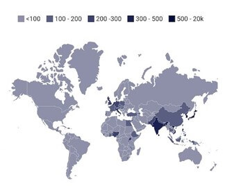 Bubbles are yet another data visualization medium. They summarize your input data. You can add information such as population density and the number of users to map regions. You can render them in different colors and sizes based on the data of their respective regions.