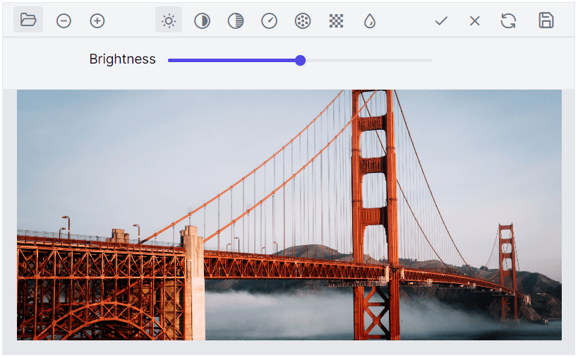 The React Image Editor provides support for fine-tuning image filters to alter the appearance of an image. Fine-tuning allows you to adjust the settings of an image filter to achieve a desired effect. The fine-tuning options are brightness, contrast, exposure, hue, saturation, opacity, and blur.