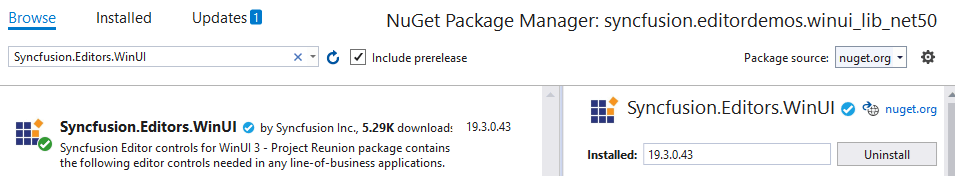 Step 2: Add the Syncfusion.Editor.WinUI NuGet package.