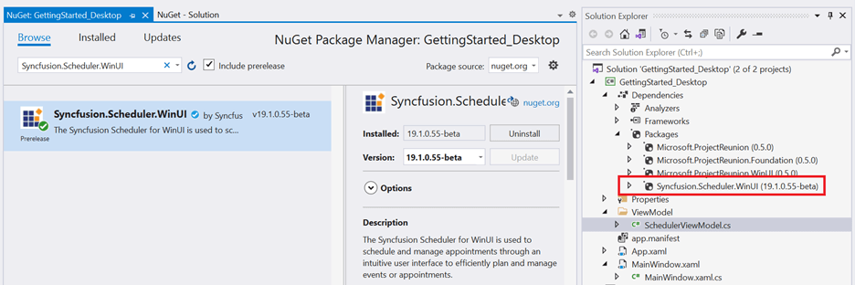 Note:Â xx.x.x.xx denotes the version [19.1.0.55-beta] of the Syncfusion WinUI 3 Project Reunion Scheduler package.