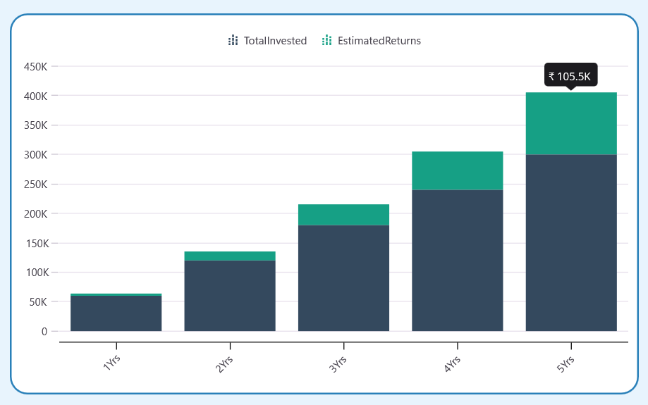 - Comparing investment scenarios: Bar or stacked charts can compare SIP returns with different durations, contribution amounts, or interest rates.