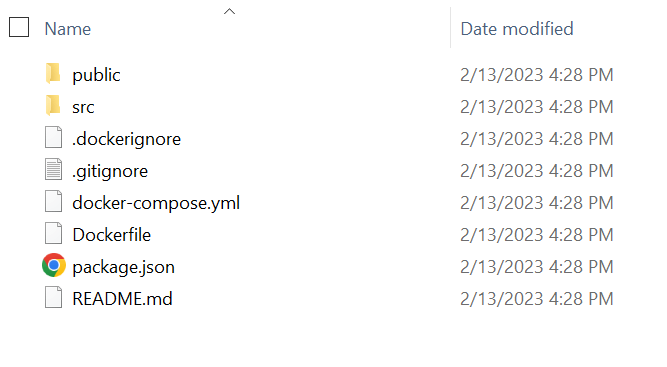 As per the configuration, Docker will copy the React app into the app container folder. During the creation of the React app, the node module files will be installed automatically. You can also keep these files or directories from being copied to the container using the dockerignore file.