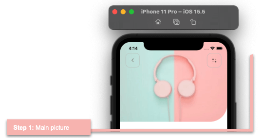 We use the CollectionView to display the list. We will use a Frame to make the round edges of each image in the list.