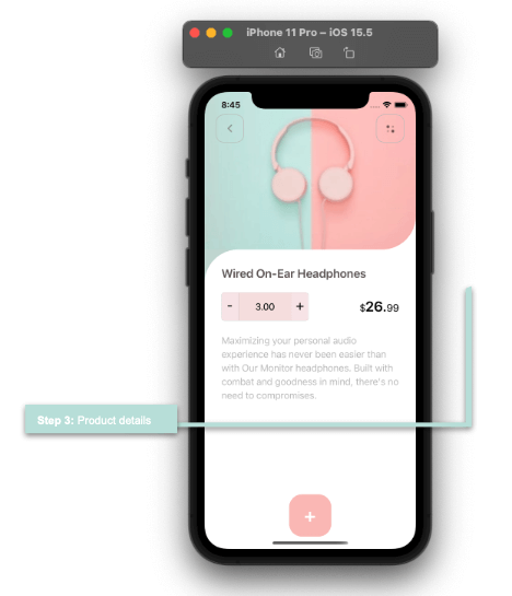 <!--Counter & price--> <updown:SfNumericUpDown Grid.Row="1" Grid.Column="0" Value="3" HeightRequest="50" Margin="0,15" BackgroundColor="#f6e1e1" SpinButtonAlignment="Both" TextAlignment="Center"> <updown:SfNumericUpDown.IncrementButtonSettings> <updown:UpDownButtonSettings BackgroundColor="#f8e7e9"/> </updown:SfNumericUpDown.IncrementButtonSettings> <updown:SfNumericUpDown.DecrementButtonSettings> <updown:UpDownButtonSettings BackgroundColor="#f8e7e9"/> </updown:SfNumericUpDown.DecrementButtonSettings> </updown:SfNumericUpDown> <!-- You must write here what is explained in the next code block -->