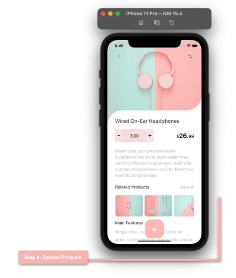 <!--Related Products details--> <Label Grid.Row="3" Grid.Column="0" FontAttributes="Bold" Text="Related Products" TextColor="#665a5a" Margin="0,20,0,15"/> <Label Grid.Row="3" Grid.Column="1" Text="View all" HorizontalOptions="End" TextColor="#d4acaa" Margin="0,20,0,15"/> <!-- You must write here what is explained in the next code block -->