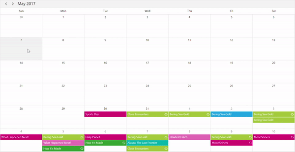 WPF Scheduler has built-in UI virtualization for better loading and view navigation performance. But that alone won’t be enough when you’re dealing with millions of events spanning multiple years. That’s where data virtualization (on-demand loading) comes in. You can provide data to the Scheduler for a single date range instead of loading all the data for multiple years.