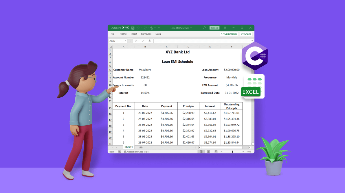 In this blog, we’ll see how to generate a loan EMI schedule as an Excel document in C# using the Syncfusion .NET Excel Library.