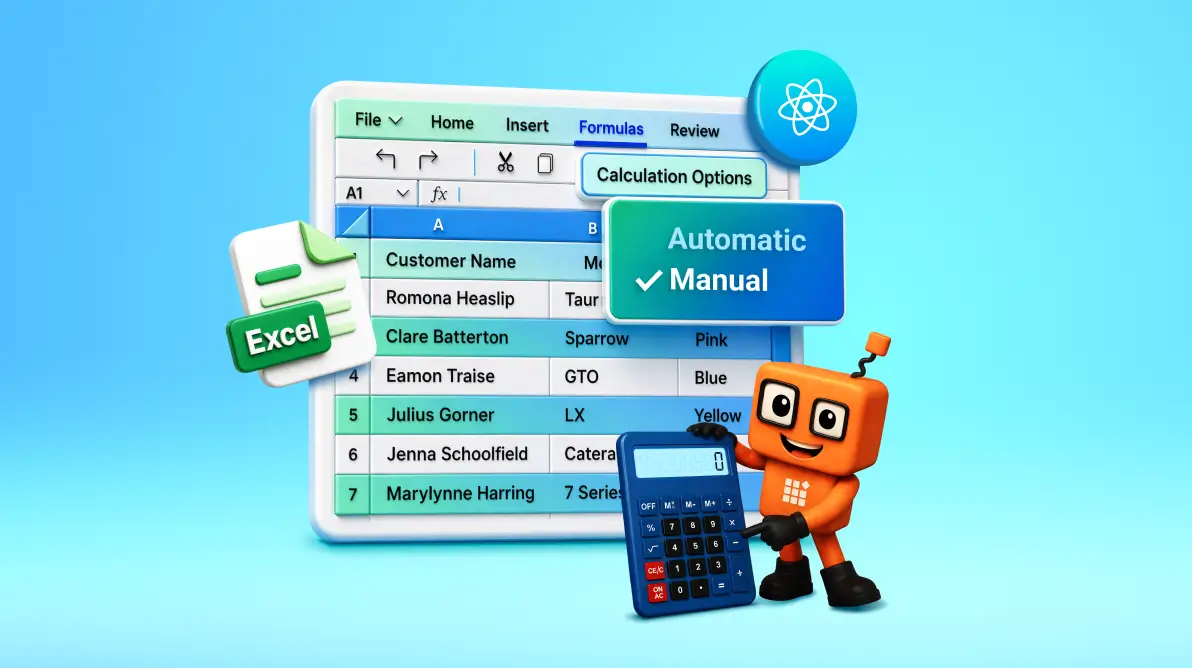 TL;DR: Formula-heavy web spreadsheets can trigger large dependency recalculation chains on each cell edit, which competes with rendering and input handling on the browser main thread. This article discusses automatic vs manual calculation mode, when recalculation runs, workbook vs sheet scope, and programmatic recalculation triggers in a React spreadsheet component.