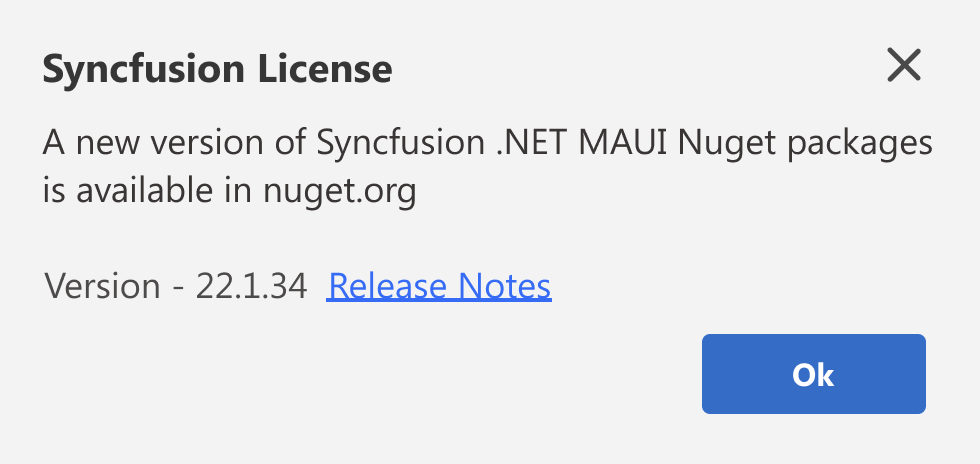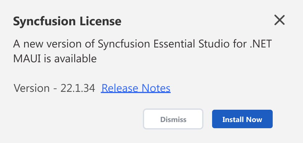 It also alerts users of a newer version of the Syncfusion Essential Studio® build. This ensures that they know about the availability of updates and are encouraged to upgrade to the latest version for enhanced functionality and bug fixes.