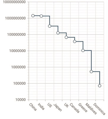 A logarithmic axis in the chart plots data points on a logarithmic scale.