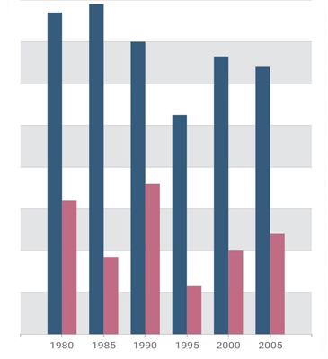 Use plot bands to differentiate ranges in the plot area with different colors to improve the readability of a chart.