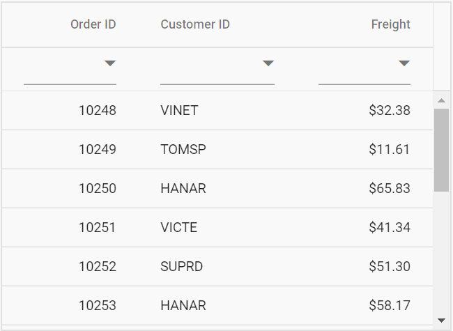 Set the filter operator for a particular column using the drop-down present in the filter bar. Then, the filtering will be performed based on the selected operator.