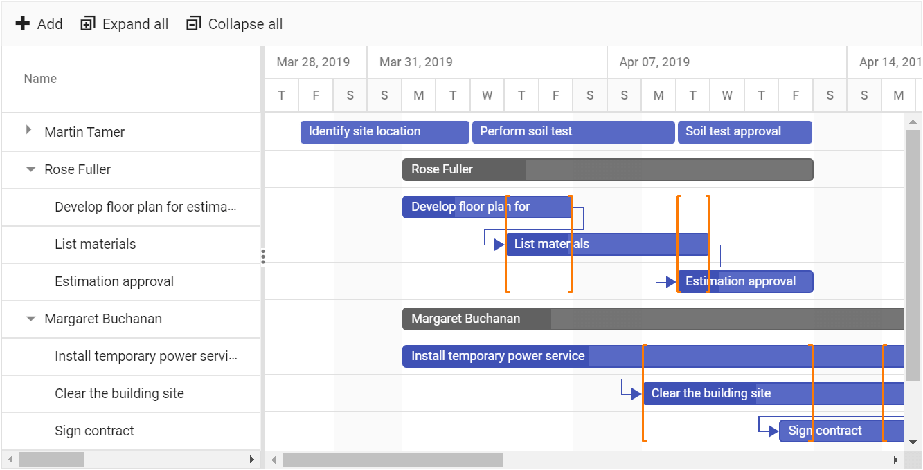 Visualize multiple tasks assigned to each resource in a row when the records are in the collapsed state.