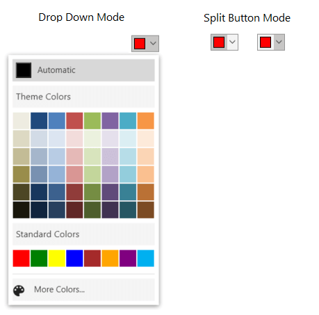 Color Picker Palette will have an optional split button mode similar to the one in MS Excel. The color change notification will be triggered even when tapping the button.