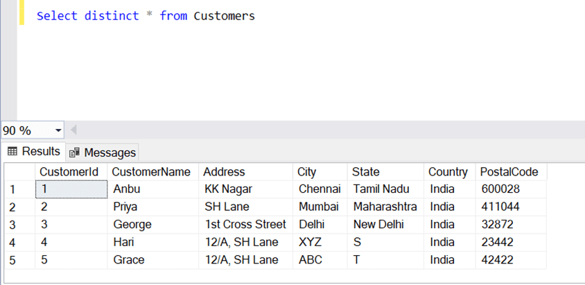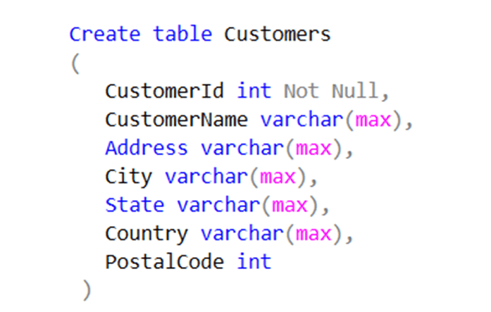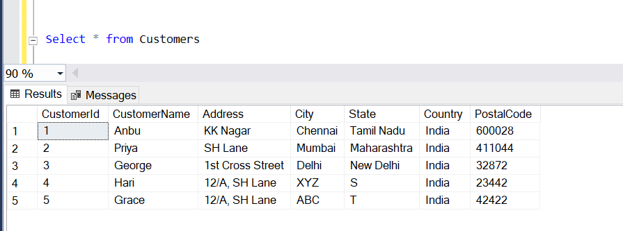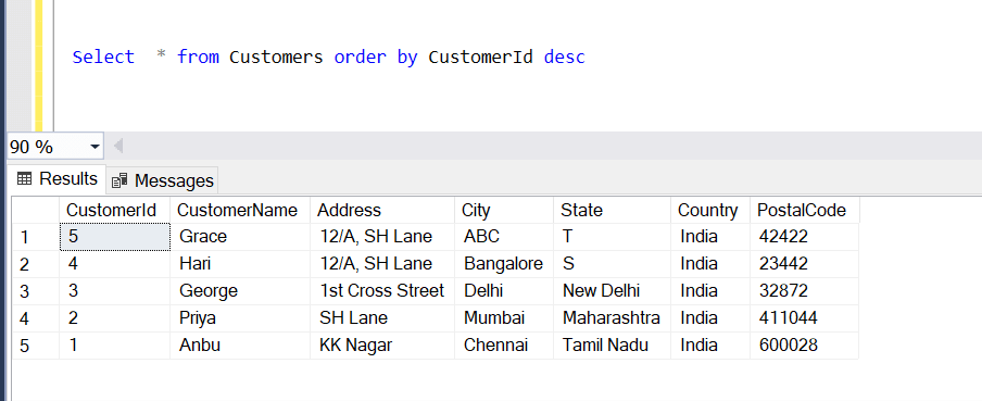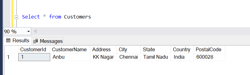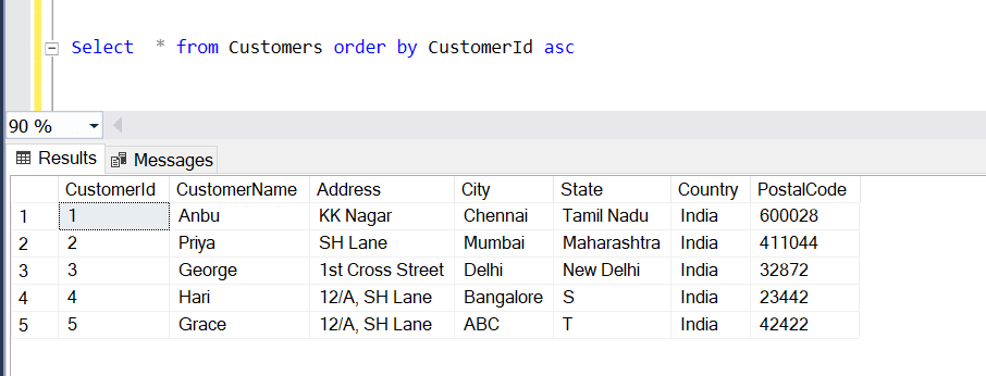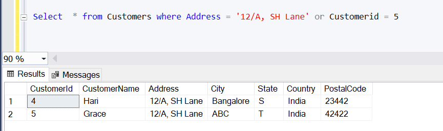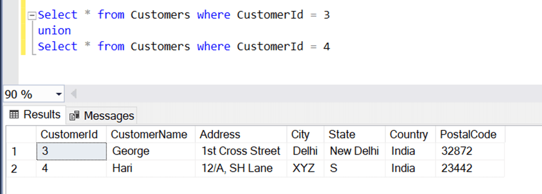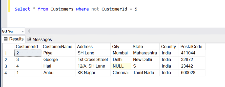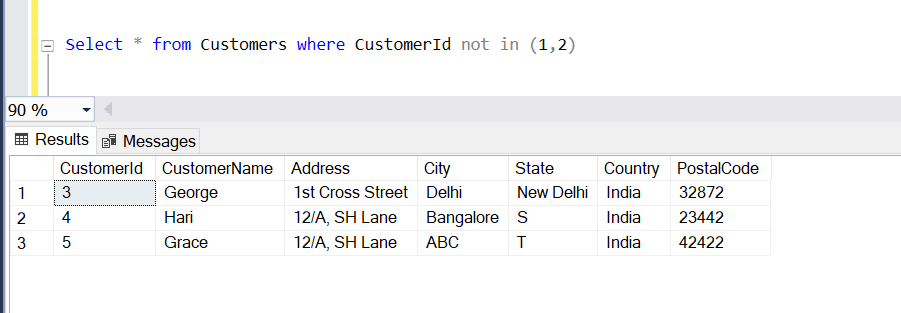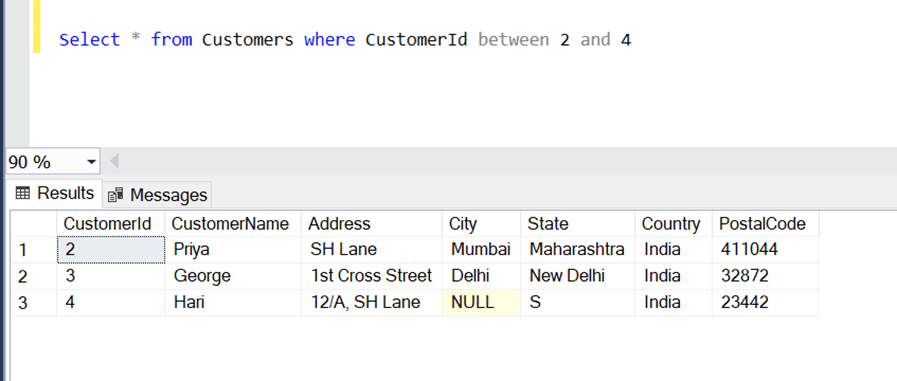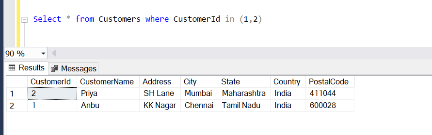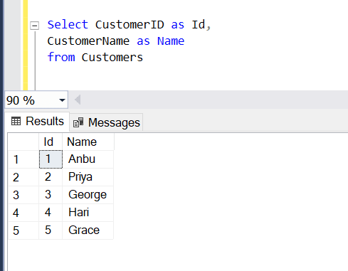 We can give a temporary name for a column in the table. Here, the CustomerID column is named Id, and the CustomerName column is named Name.