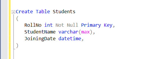Example: Here, the RollNo column is marked as Primary Key, as each student has a unique roll number.