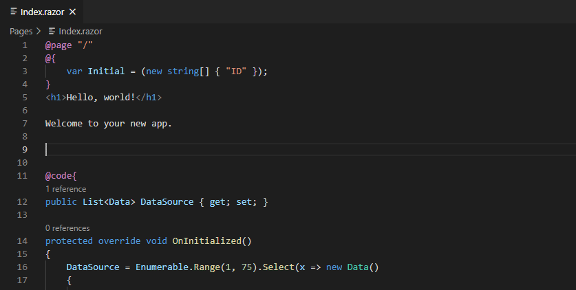 - Open an existing Blazor application or create a new Blazor application in Visual Studio Code.