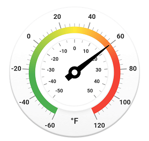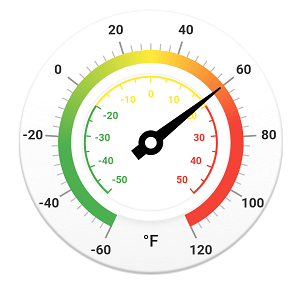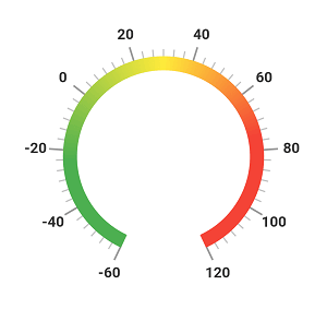Range: To indicate the temperature range. Multiple ranges can be added to explain the level of severity of the temperature level. The range appearance is highly customizable with gradient colors.