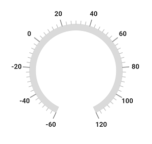 To customize the temperature scale start and end positions, use the startAngle and endAngle properties of the radial axis.