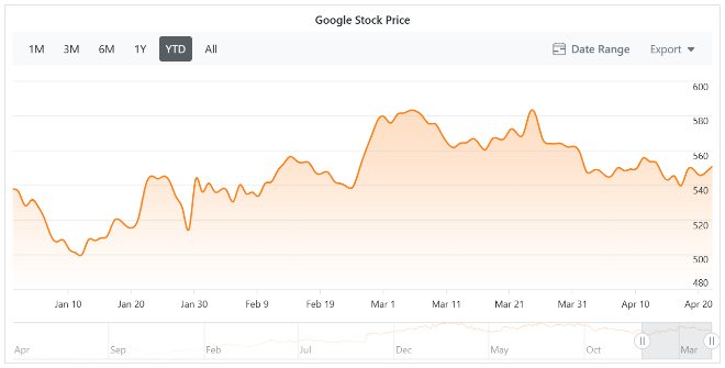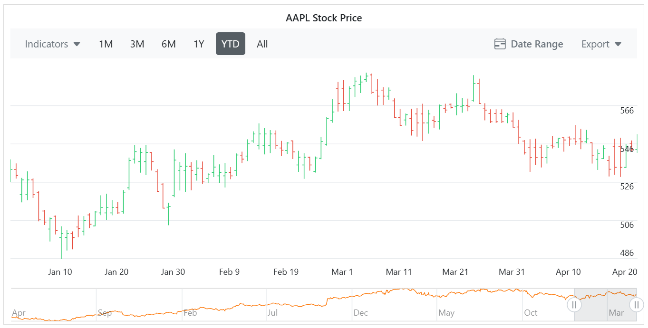 • Range selector & navigator: An interactive range selector to zoom into specific periods and a navigator to scroll through historical stock data easily.