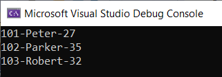 Console.WriteLine(employeeDetail.Id + "-" + employeeDetail.Name + "-" + employeeDetail.Age);