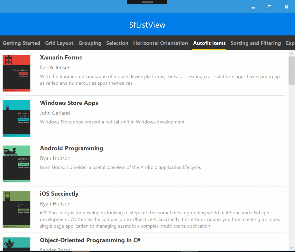 Xamarin.Forms WPF ListView control can be used in all situations where both the horizontal and vertical directions of scrollable data lists are displayed.